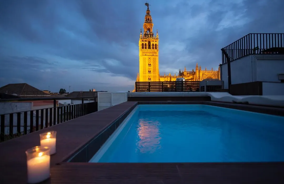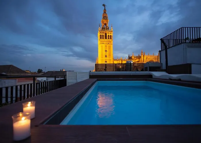 1-slaapkamer Giralda Sevilla Apartment ligt in de Casco Antiguo wijk en biedt luxe aanbiedingen zoals een solarium en een buitenzwembad voor een aangenamer verblijf. Dit 45 m² grote appartement bevindt zich op slechts 1 km verwijderd van Puerta de Jerez metrohalte.